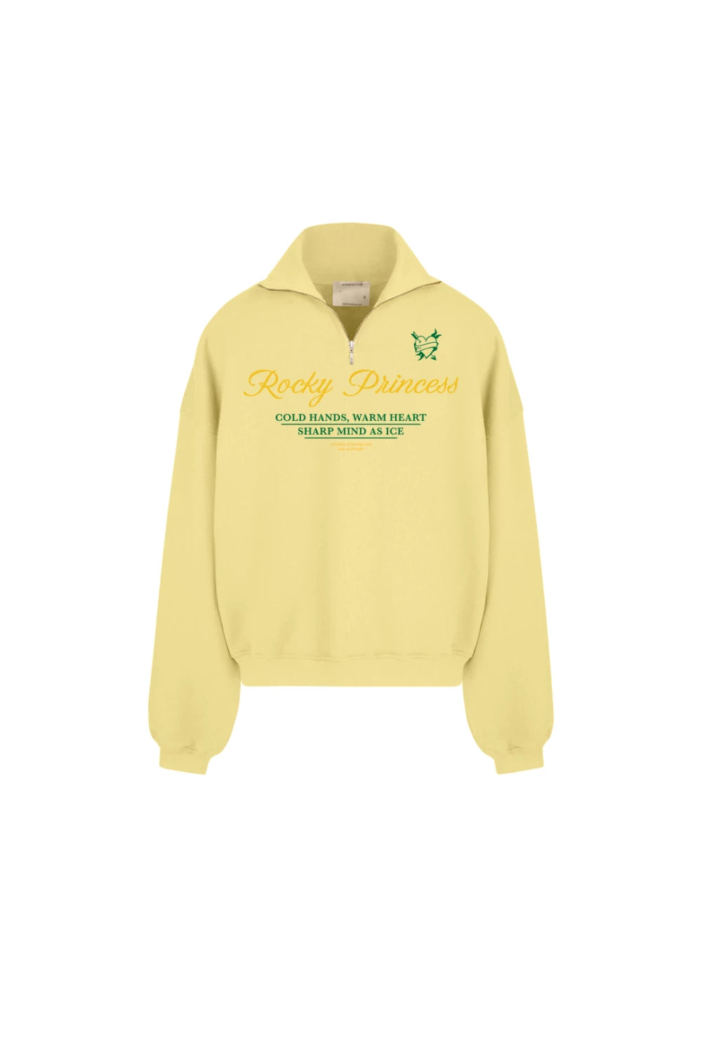 світшот “rocky princess” у кольорі baby yellow — вільного крою, з високим коміром і блискавкою....
