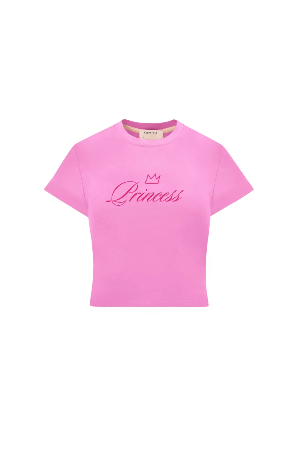 футболка princess — рожевий колір, кроп-фасон з класичною горловиною і приталеним силуетом виготовлена зі щільного...