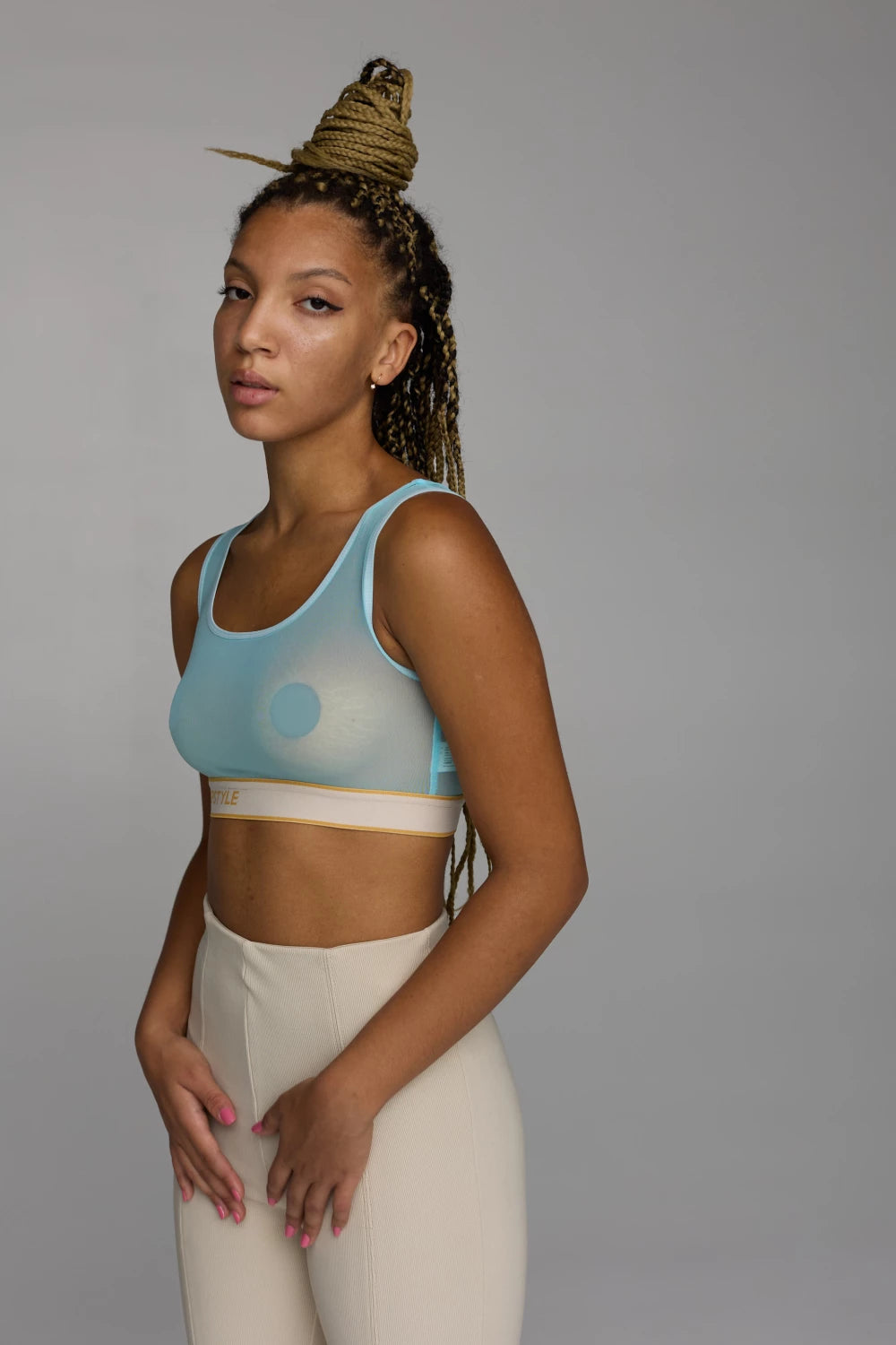 топ mesh на резинці у блакитному кольорі має напівпрозорий силует, що дає змогу вам грати...