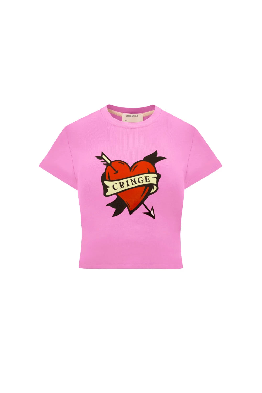 футболка cringe — кроп-фасон, щільна посадка по фігурі і принт, який складно не помітити. серце...