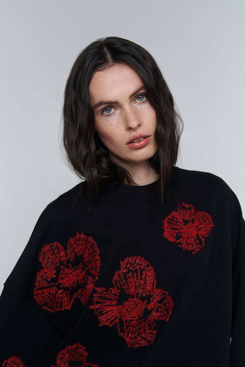 світшот kvity у чорному кольорі з колекції UBETTER, візуальний акцент якого постає в поєднанні староукраїнських...