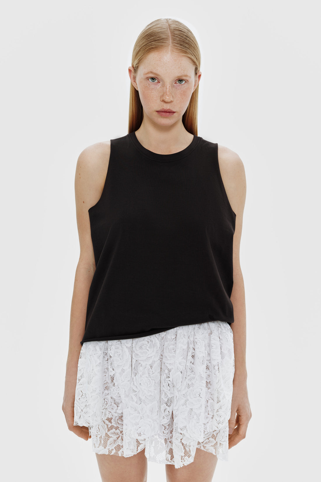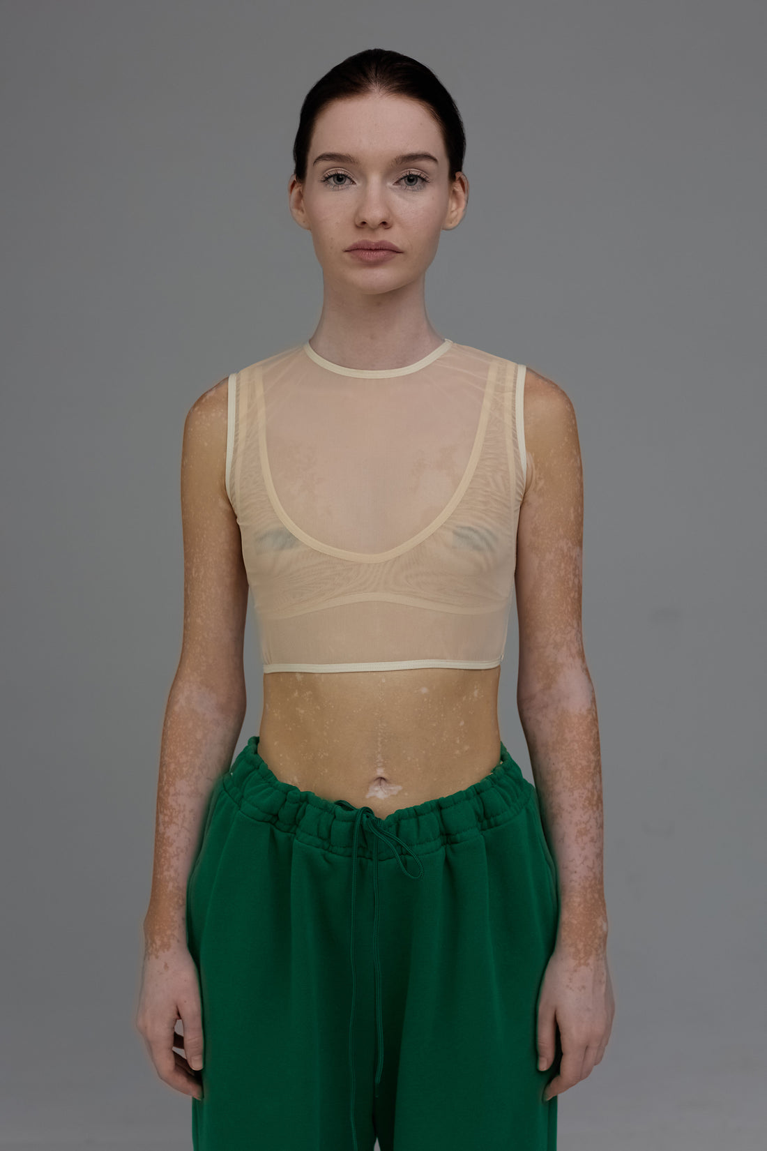 топ із сітки подвійний у бежевому кольорі має напівпрозорий силует, що дає змогу вам грати...