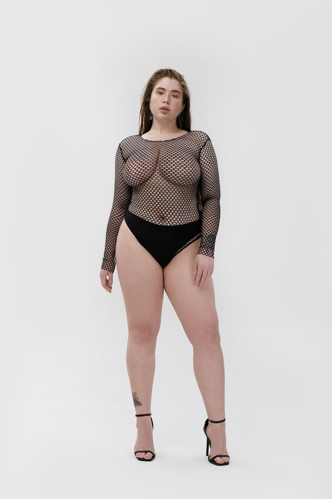 боді "sheer mesh" у чорному кольорі з еластичної крупної сітки має напівпрозорий силует, що дає...