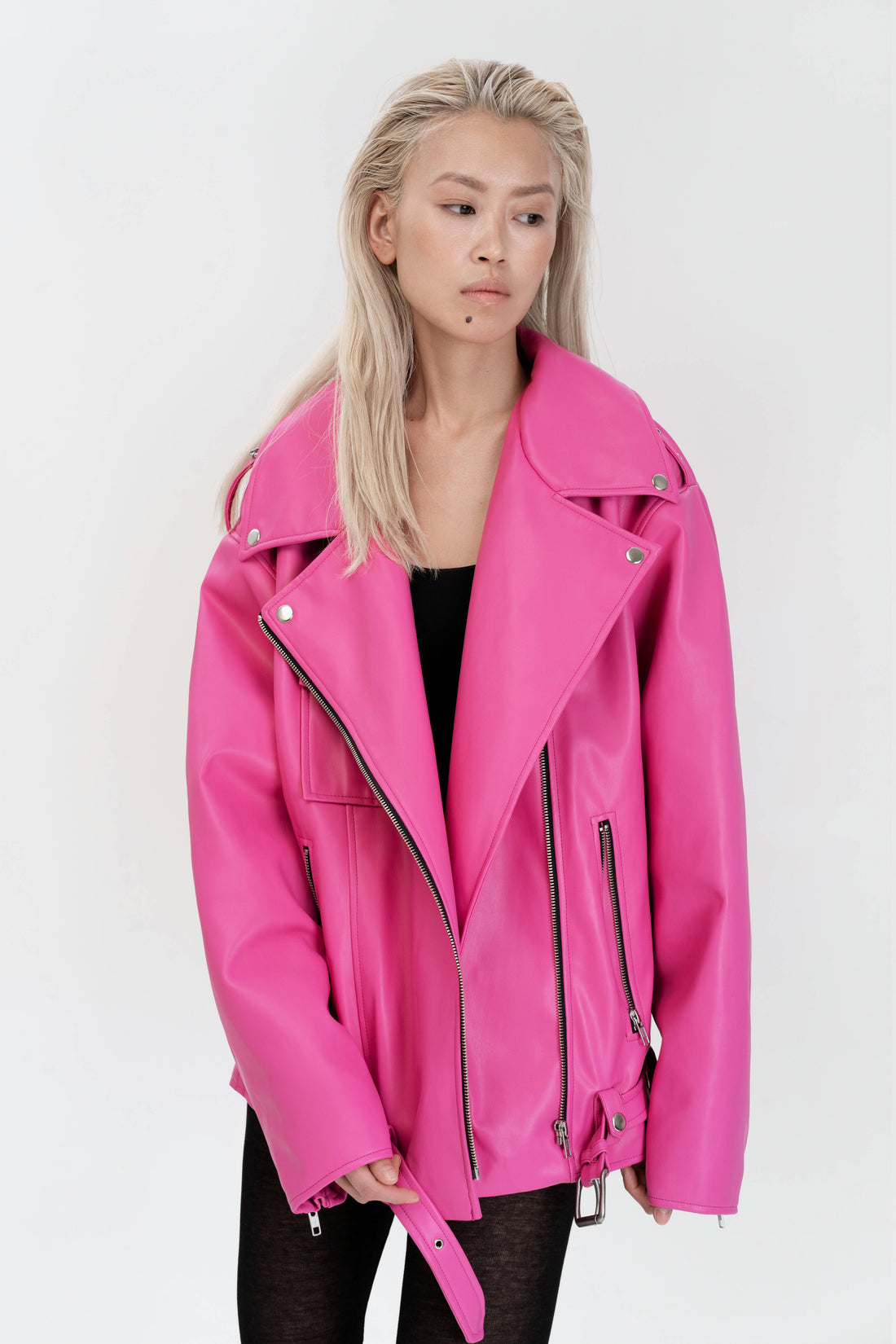 косуха в рожевому кольорі — класна акцентна річ у гардеробі. фасон oversize створює вільний і...