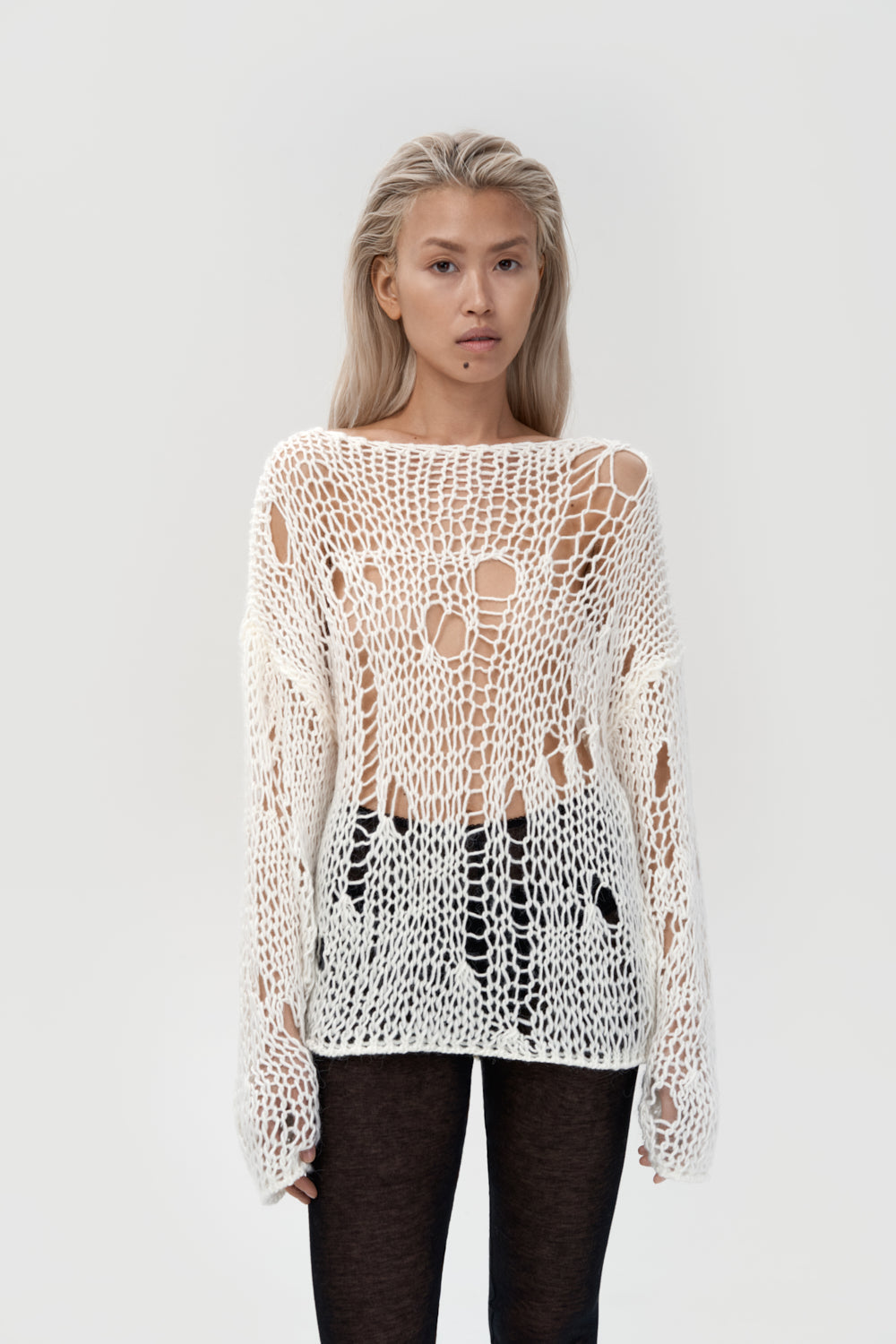 світло молочного кольору має вільний тип плетіння, що імітує дірки. завдяки вільному крою та мʼякі...