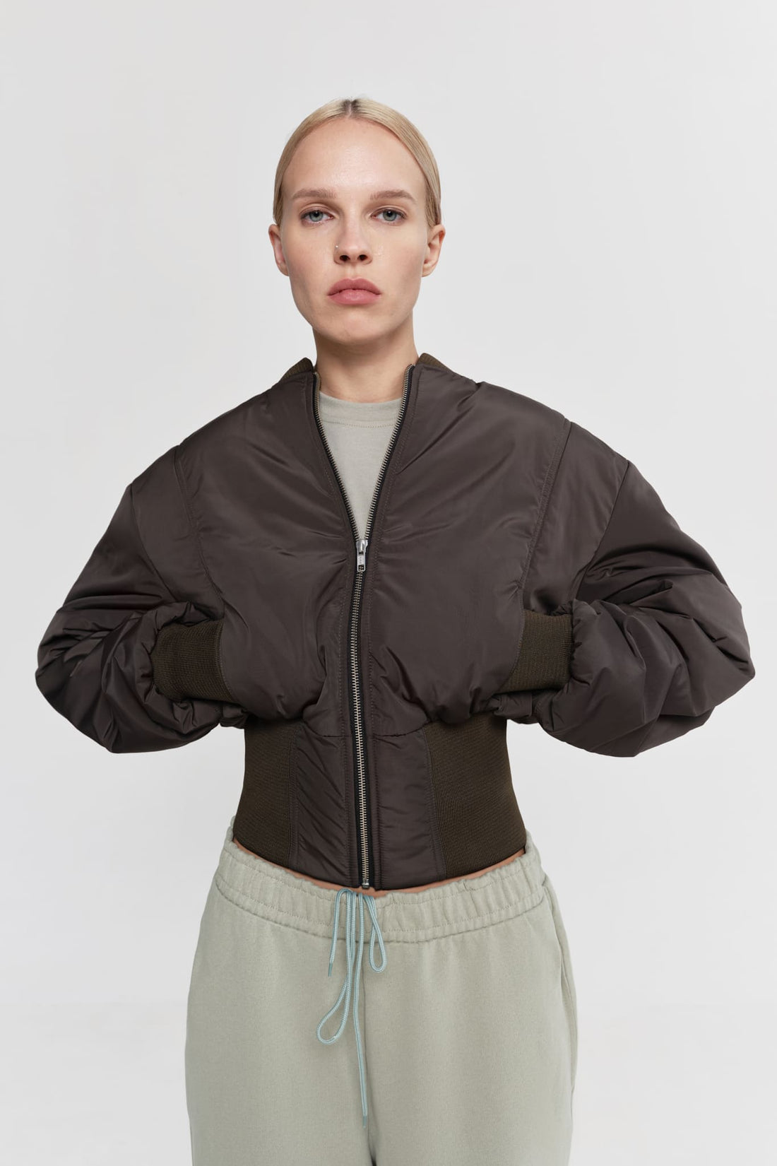 бомбер укорочений у кольорі хакі