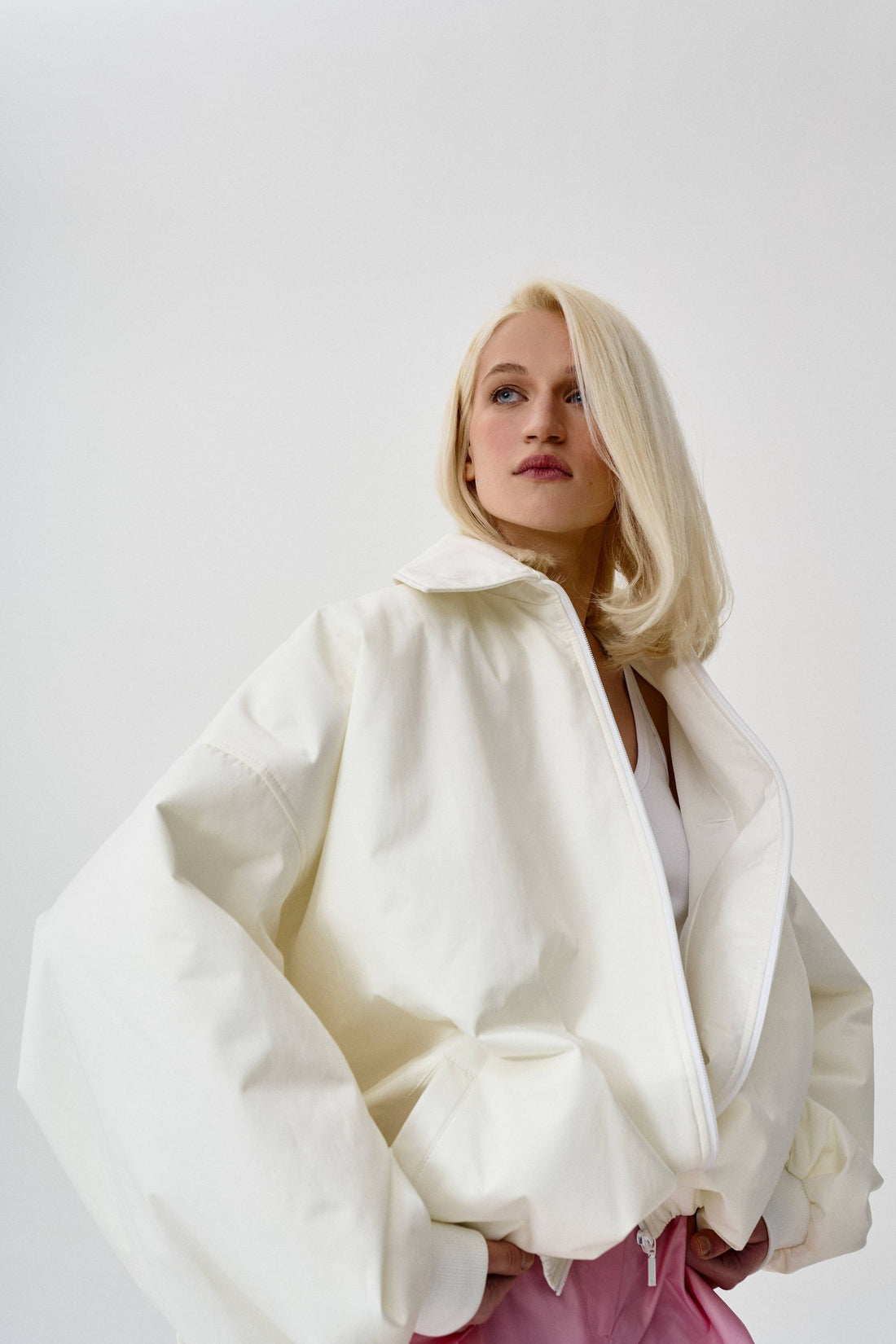 бомбер у молочному кольорі в супер oversize фасоні. бомбер виготовлений з високоякісного матеріалу, який надає...