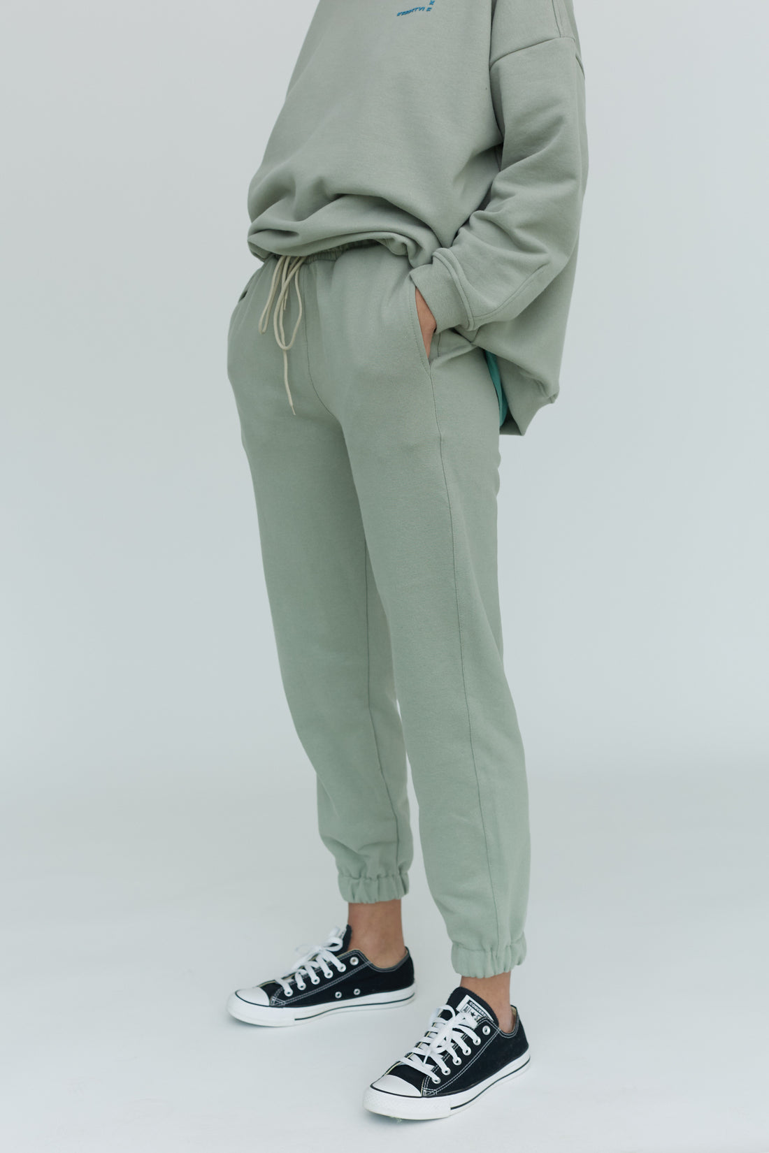 штани unisex у цікавому кольорі forest мають 2 бічні кишені, затягувальні шнурки, за допомогою яких...