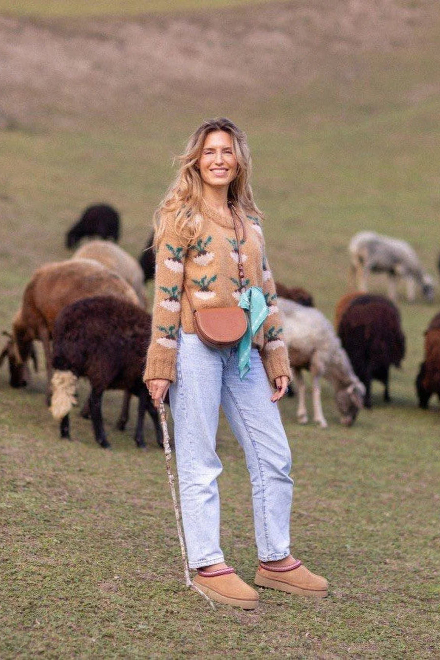 темно-бежевий светр з бурячками
