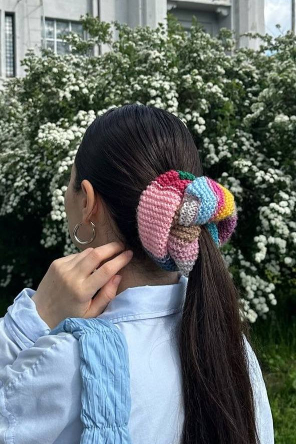 в'язана різнокольорова максі резинка для волосся №1