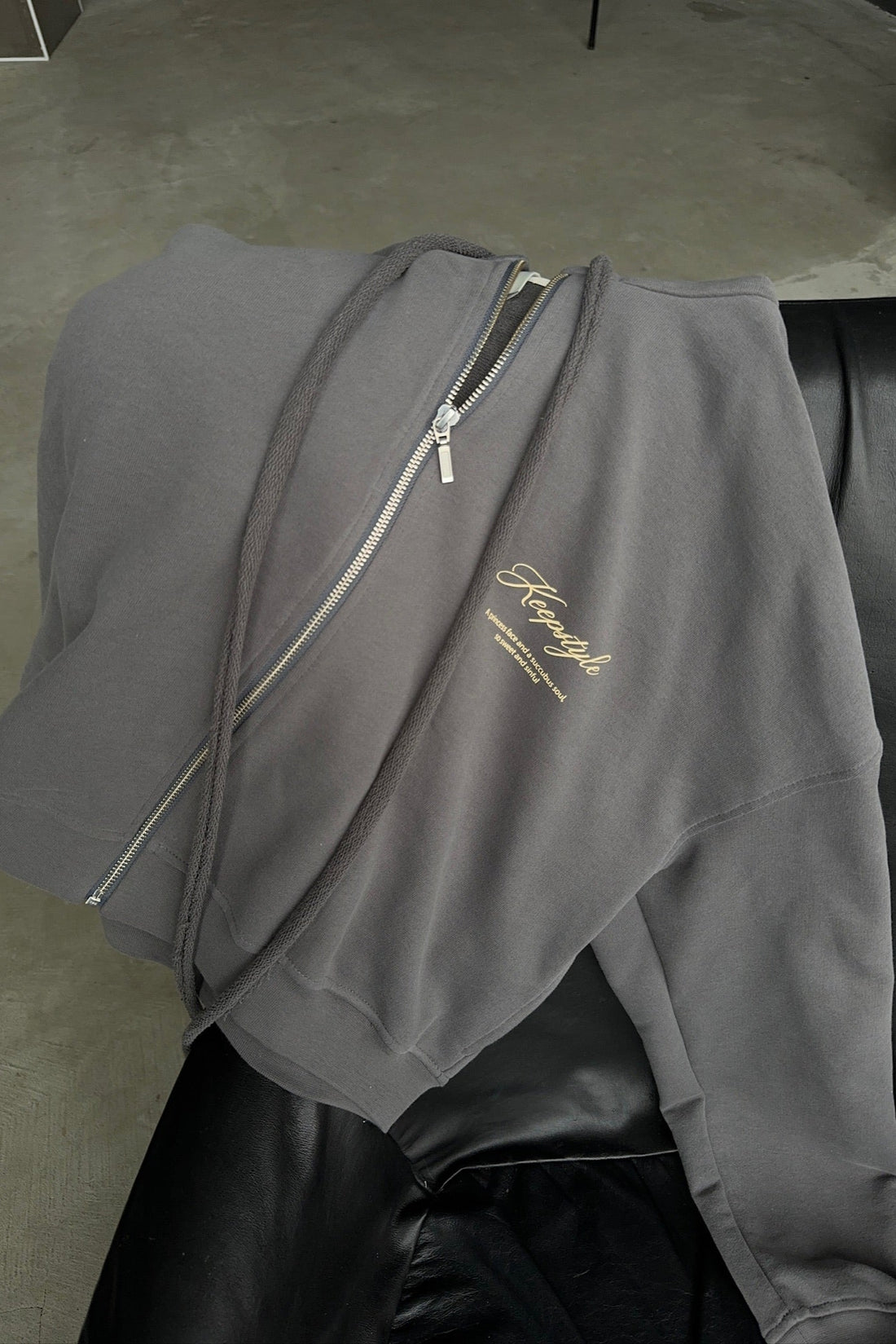 *зіпер укорочений з довгими шнурками у сірому кольорі special selection