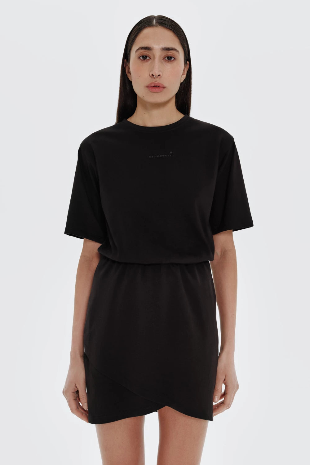 сукня у чорному кольорі поєднала в собі 2 речі - футболку oversize і спідницю mini....