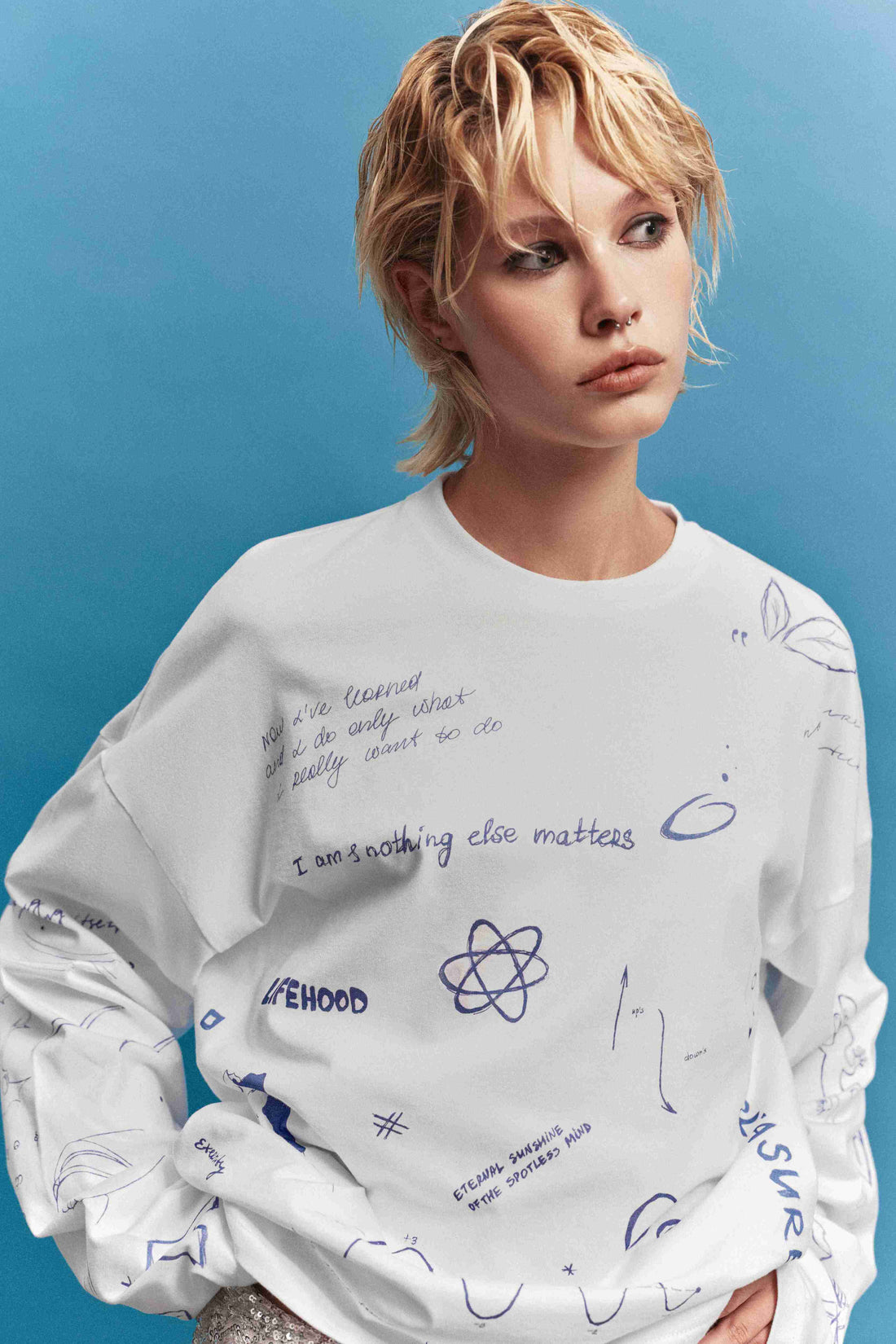 футболка queen of fucking everything у білому кольорі з надписом спереду. футболка виконана в фасоні oversize і має спущене плече