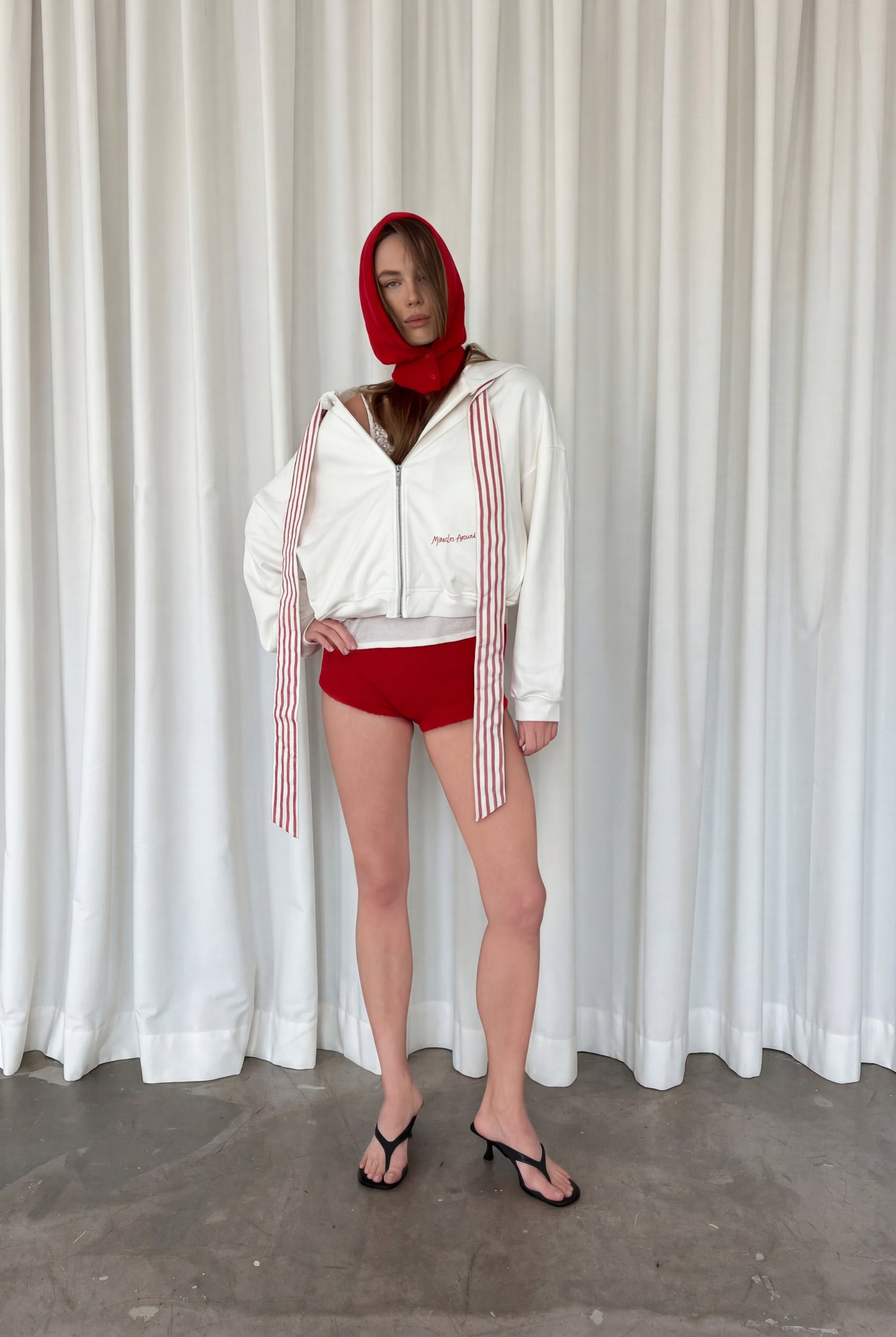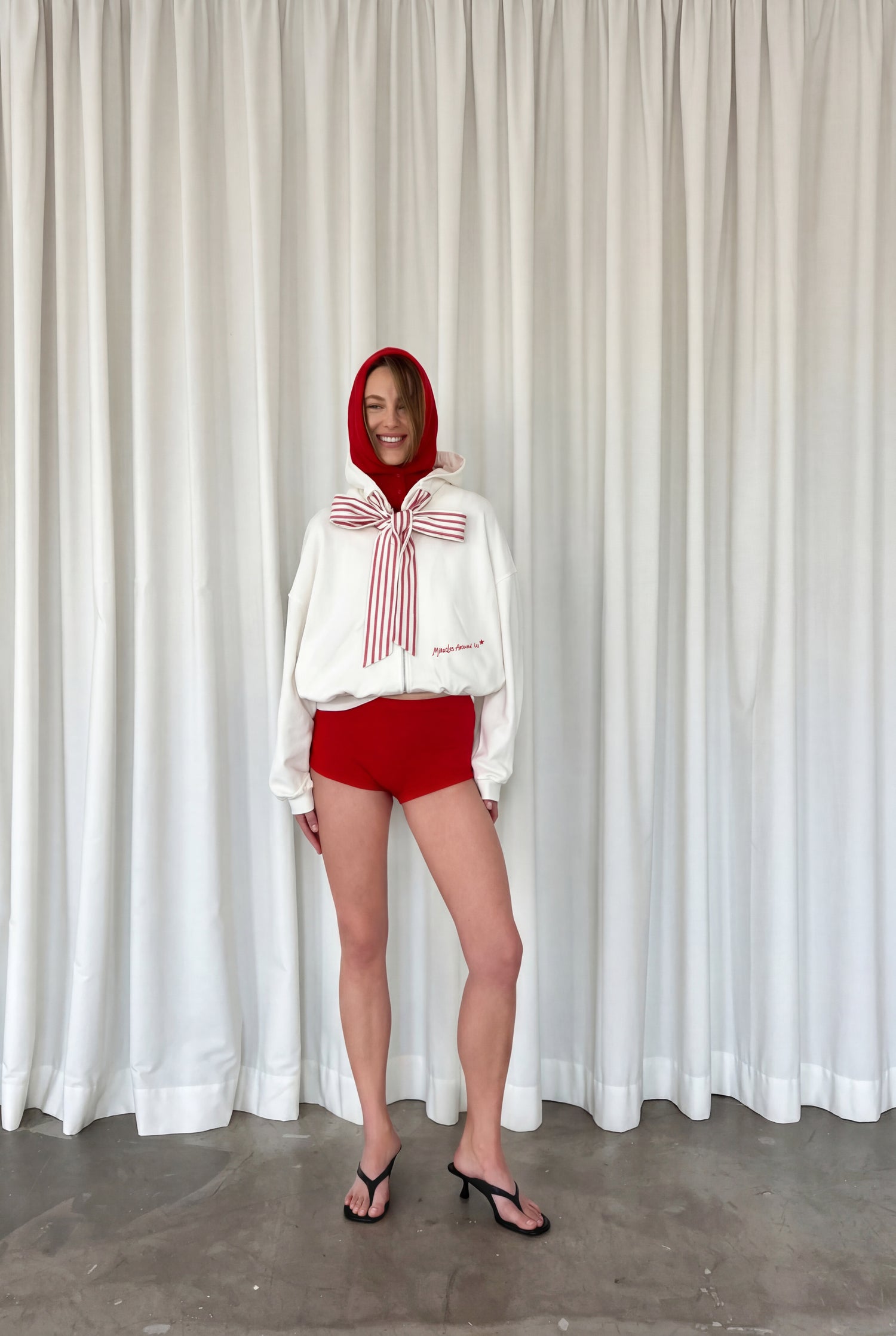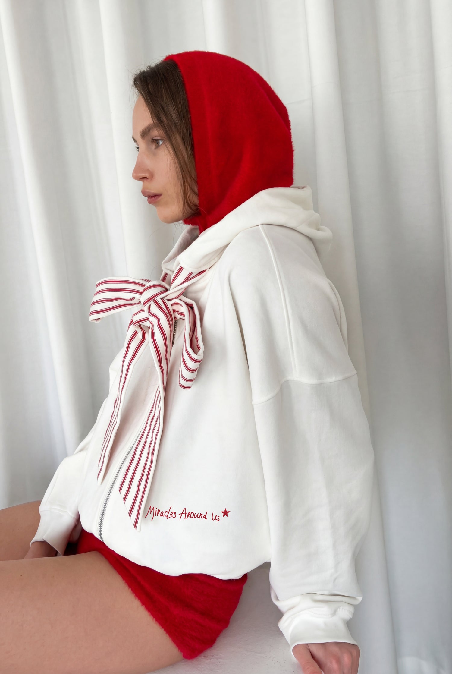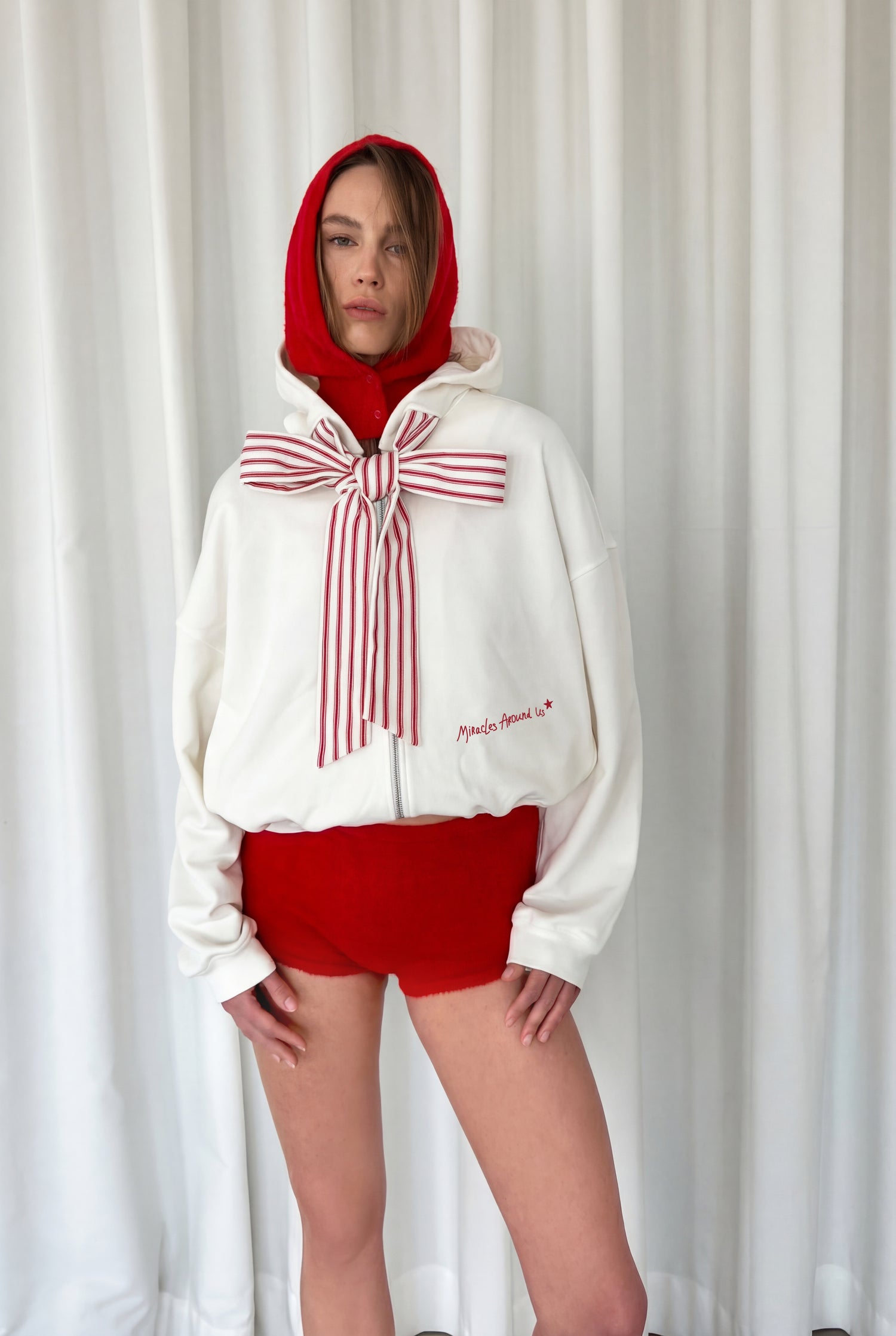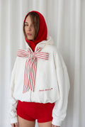 молочний зіпер Bow Edition із завʼязками у полоску – базова річ із характером. вільний крій, щільна бавовна, комфортна посадка. об'ємний бант додає акценту, можна залишити вільно або зав’язати, щоб змінювати настрій образу