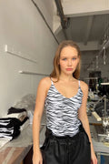 боді тигровий на бретелях у білому кольорі