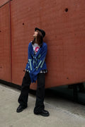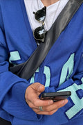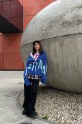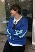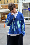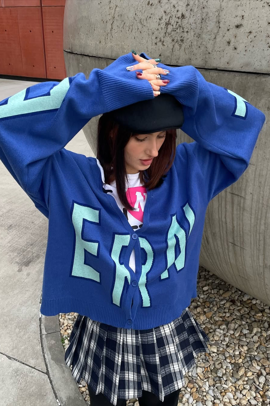 в'язаний кардиган "eternal" виконаний у насиченому синьому кольорі з великим контрастним написом. кардиган має фасон oversize, що забезпечує комфорт і вільність рухів. довгі рукава ідеально доповнюють загальний дизайн, створюючи ефектний силует. застібається на гудзики спереду, що дозволяє легко регулювати рівень відкритості і робити кардиган універсальним елементом гардероба