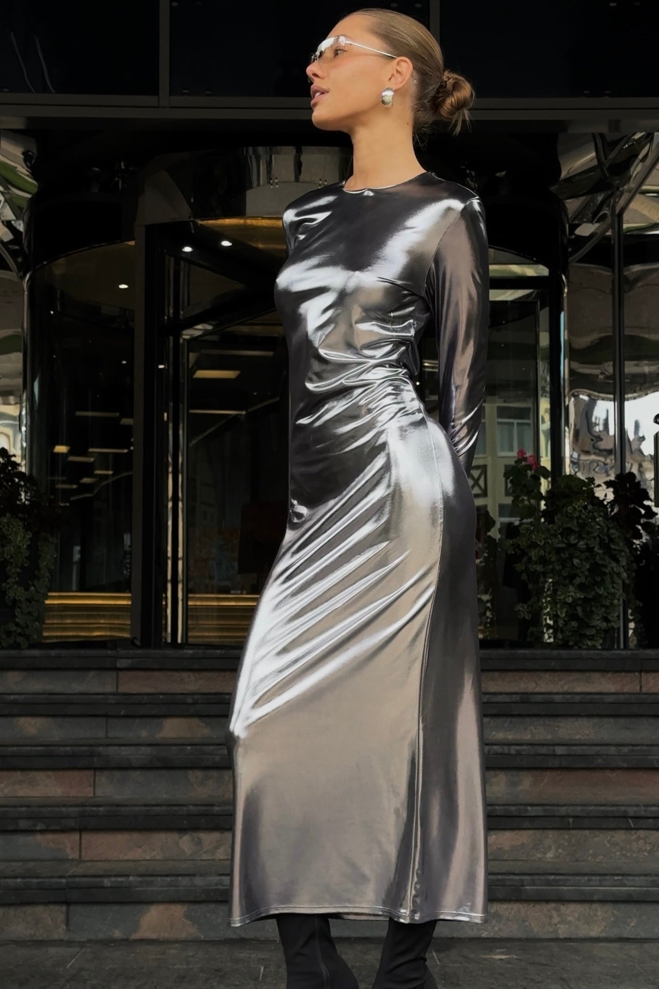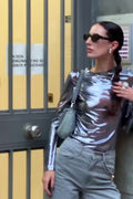 лонгслів dark silver — це ідеальний вибір для будь-якої вечірки. Він має облягаючий крик, що підкреслює фігуру, і блискучий срібний відтінок, який привертає увагу та додає розкоші та елегантності образу. Цей лонгслів — справжній акцент у гардеробі, що розкриває сексуальність та сміливість.