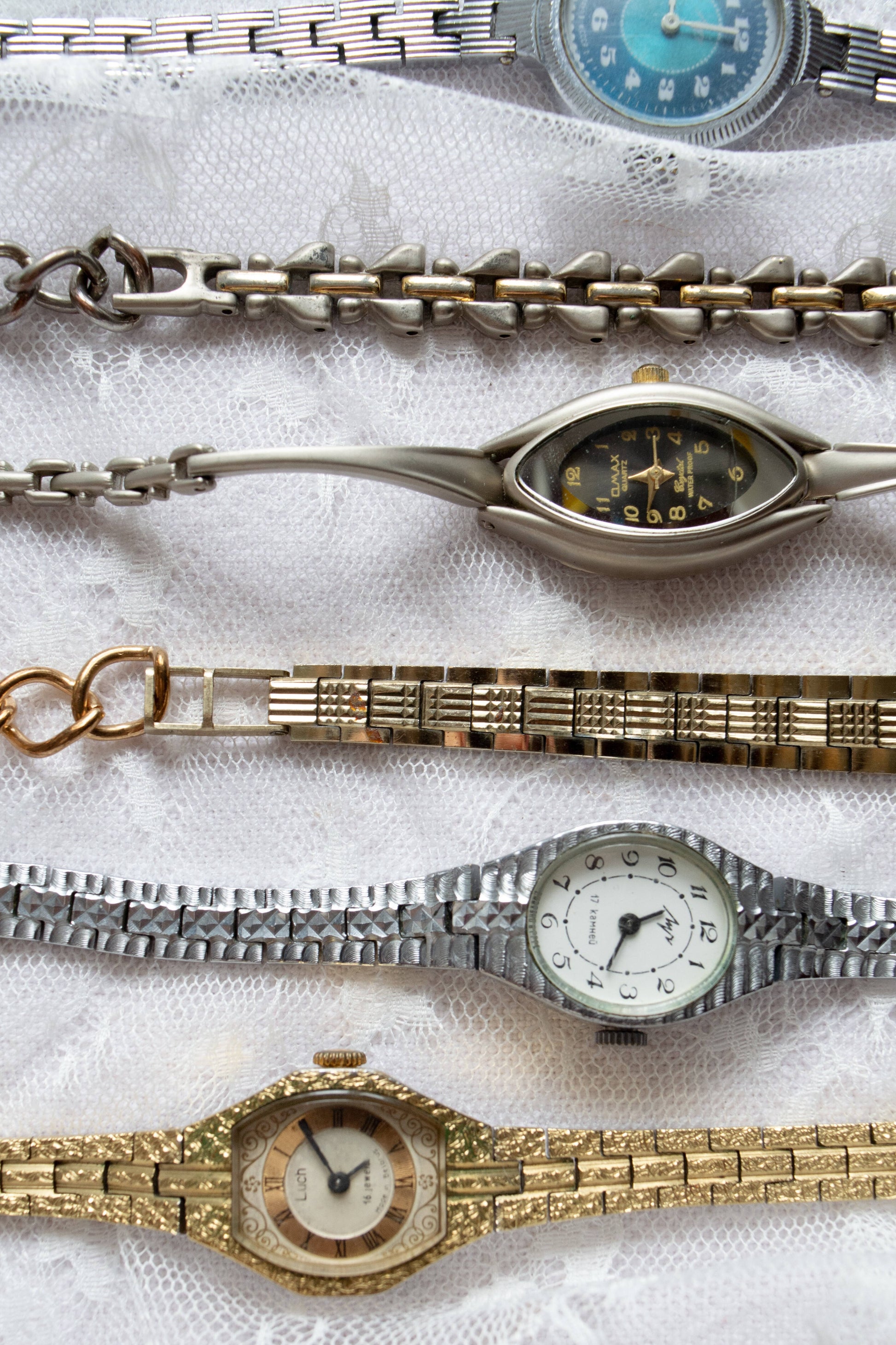 це годинники, які вже побачили світ. були знайдені в різних куточках світу та вже майже опинились на смітнику. їх час зупинився, вони мають сліди часу але саме це і робить їх унікальними та гарними. забудь про час і носи часи так як хочеш ти