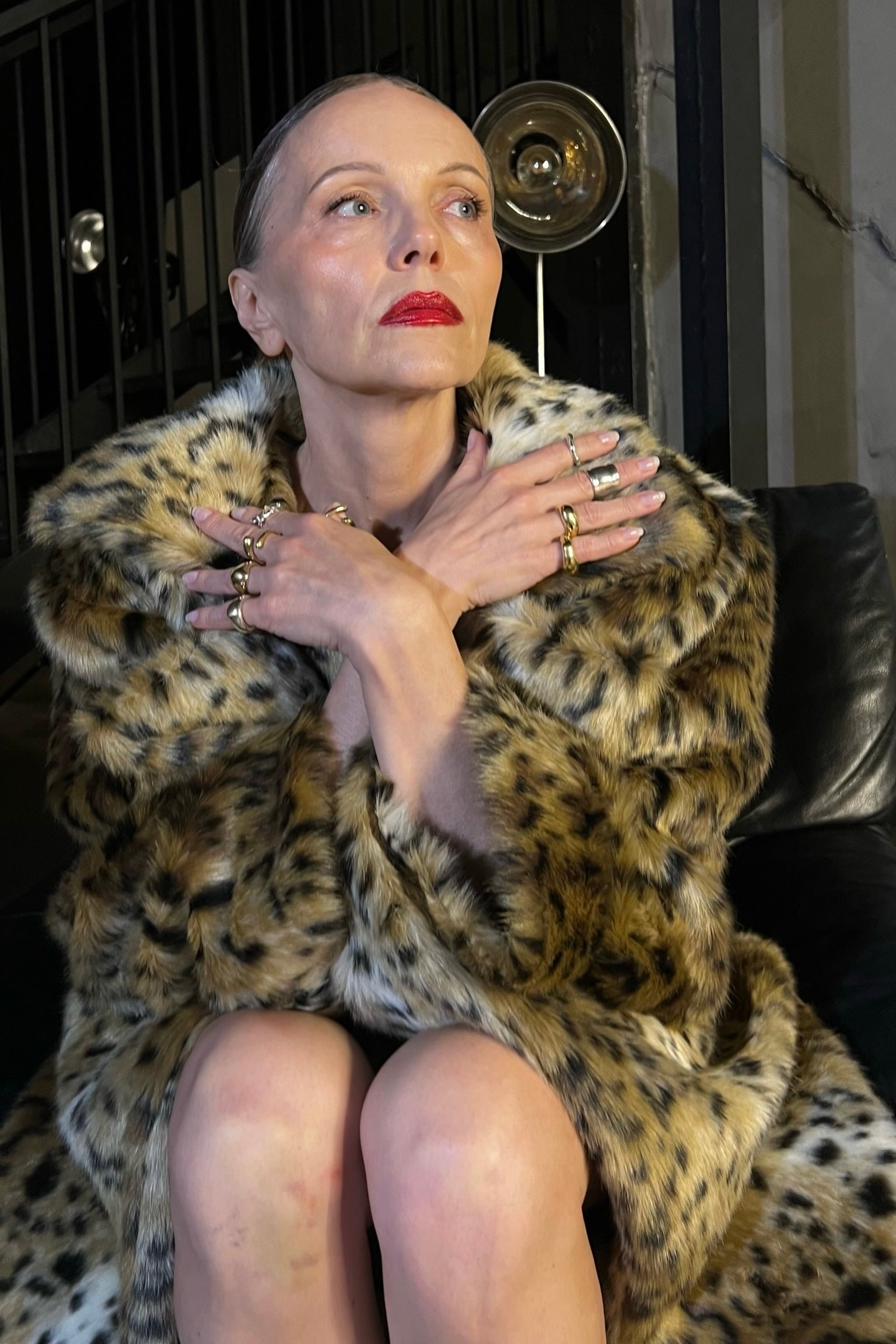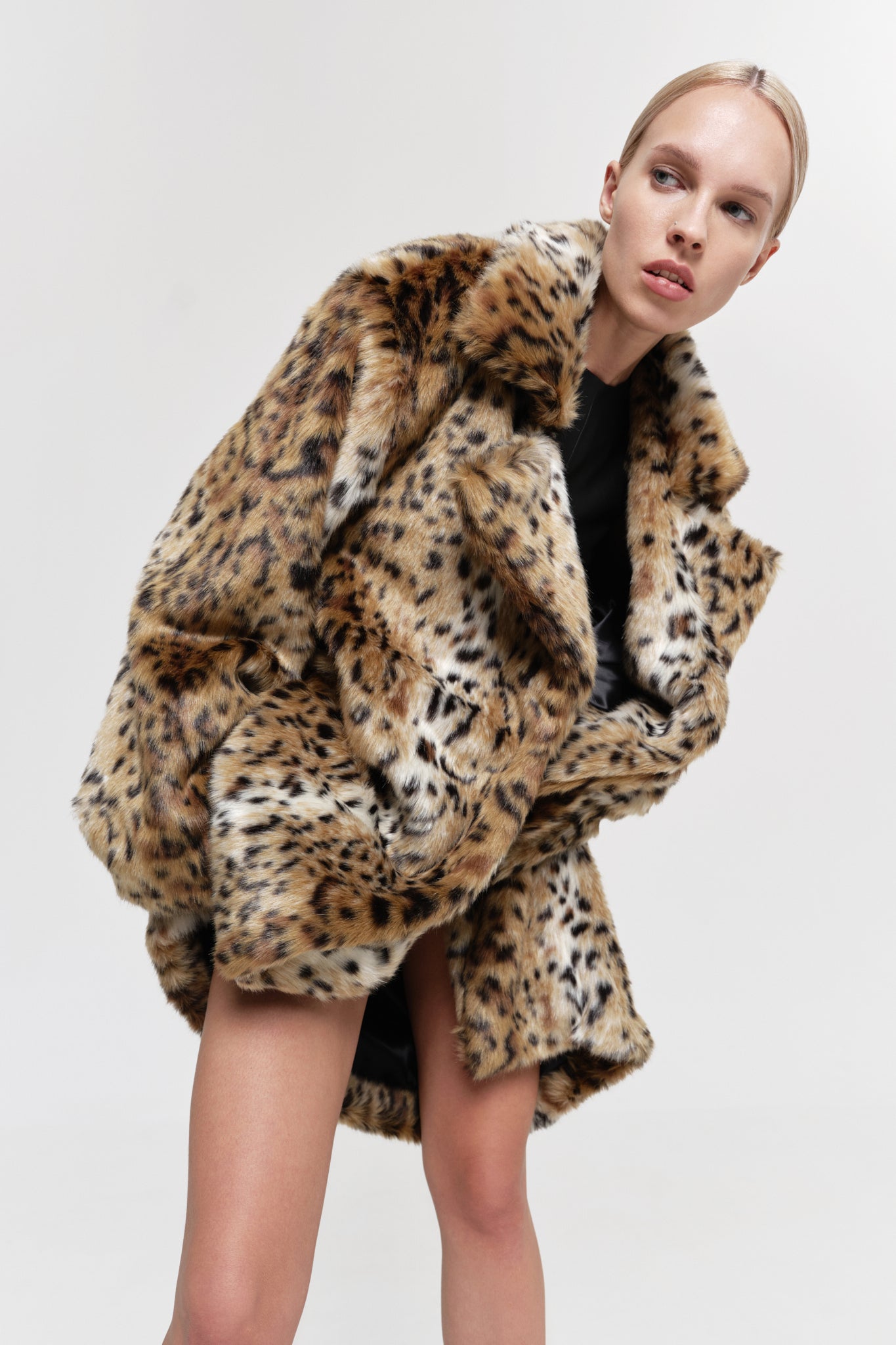 шуба "donna" з леопардовим принтом виготовлена з високоякісного японського екохутра, яке надає їй розкішного і блискучого зовнішнього вигляду. шуба виконана в фасоні oversize, має широкі рукави та плечі, що додає об'ємності силуету, а для комфортного носіння з внутрішньої сторони присутні 2 потаємні кнопки