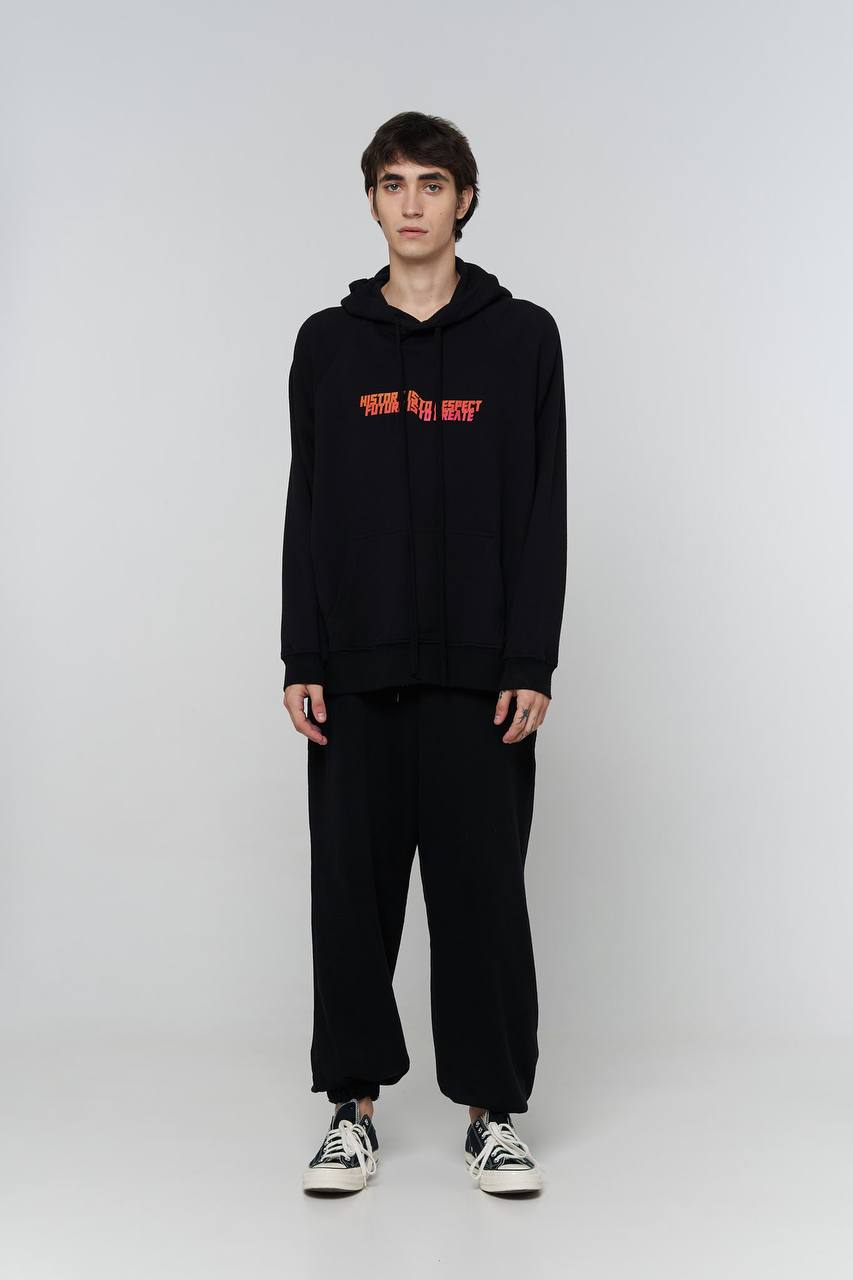 худі "history // future" з рукавами реглан, йде у фасоні oversize. в худі присутні декоративні елементи - шнурки, які зроблені з основного матеріалу виробу, принт, а також попереду є кишеня, в якому достатньо місця для рук і дрібних речей.