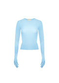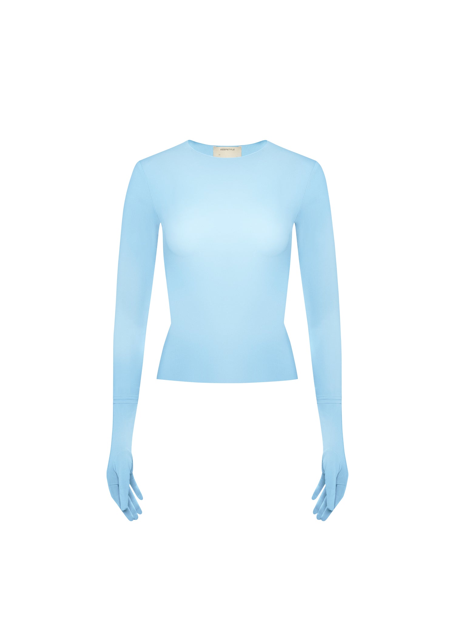 блакитний лонгслів "lilith" - відмінне доповнення до вечірнього образу. лонгслів ідеально сидить по фігурі завдяки еластичному біфлексу, який добре тягнеться, не сковує рухи і надає виробу розкішного і блискучого зовнішнього вигляду, тому в ньому можна танцювати, робити селфі та бути в центрі уваги. рукав комфортно переходить в рукавичку, яка легко знімається і перетворюється в аксесуар