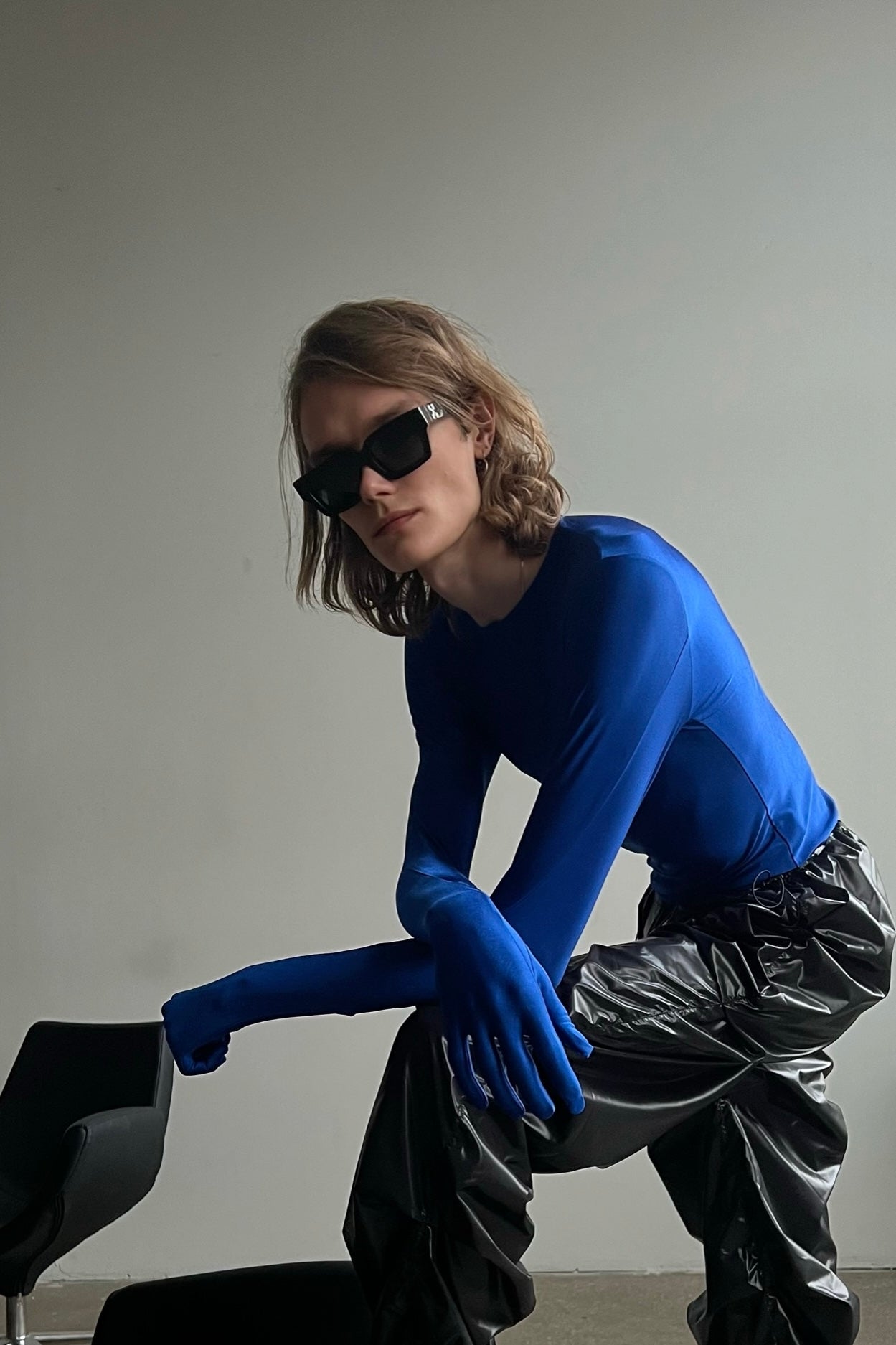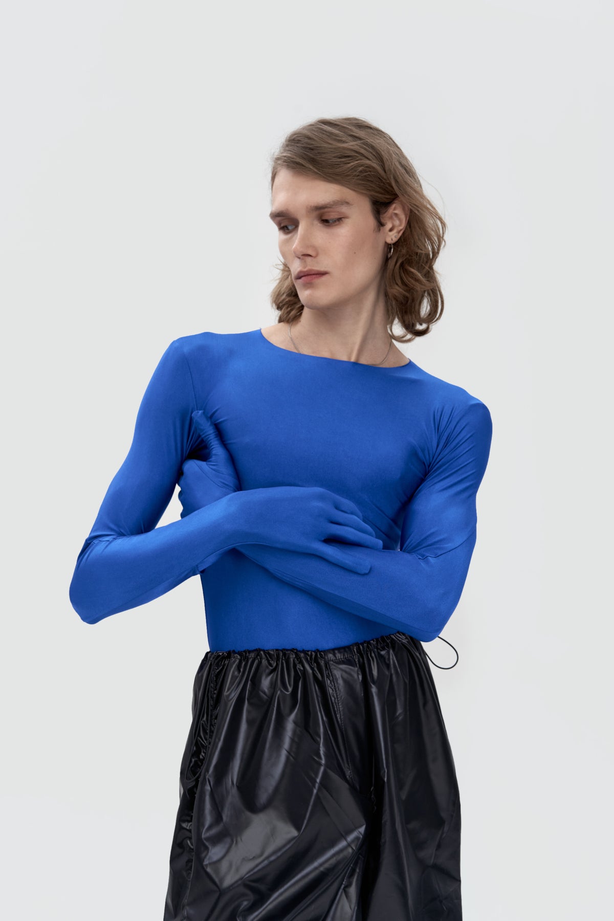 лонгслів кольору електрик - відмінне доповнення до вечірнього образу. лонгслів ідеально сидить по фігурі завдяки еластичному біфлексу, який добре тягнеться, не сковує рухи і надає виробу розкішного і блискучого зовнішнього вигляду, тому в ньому можна танцювати, робити селфі та бути в центрі уваги. рукав комфортно переходить в рукавичку, яка легко знімається і перетворюється в аксесуар