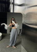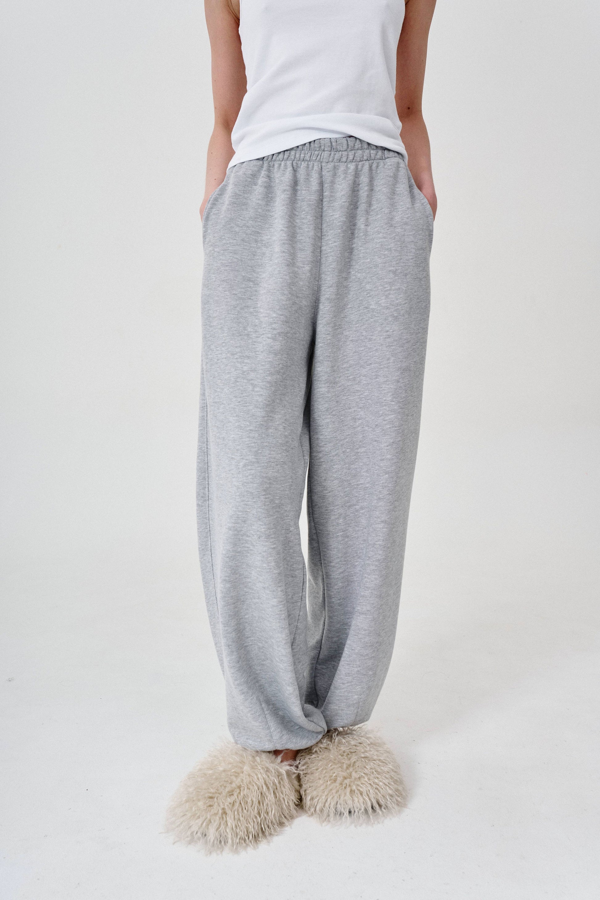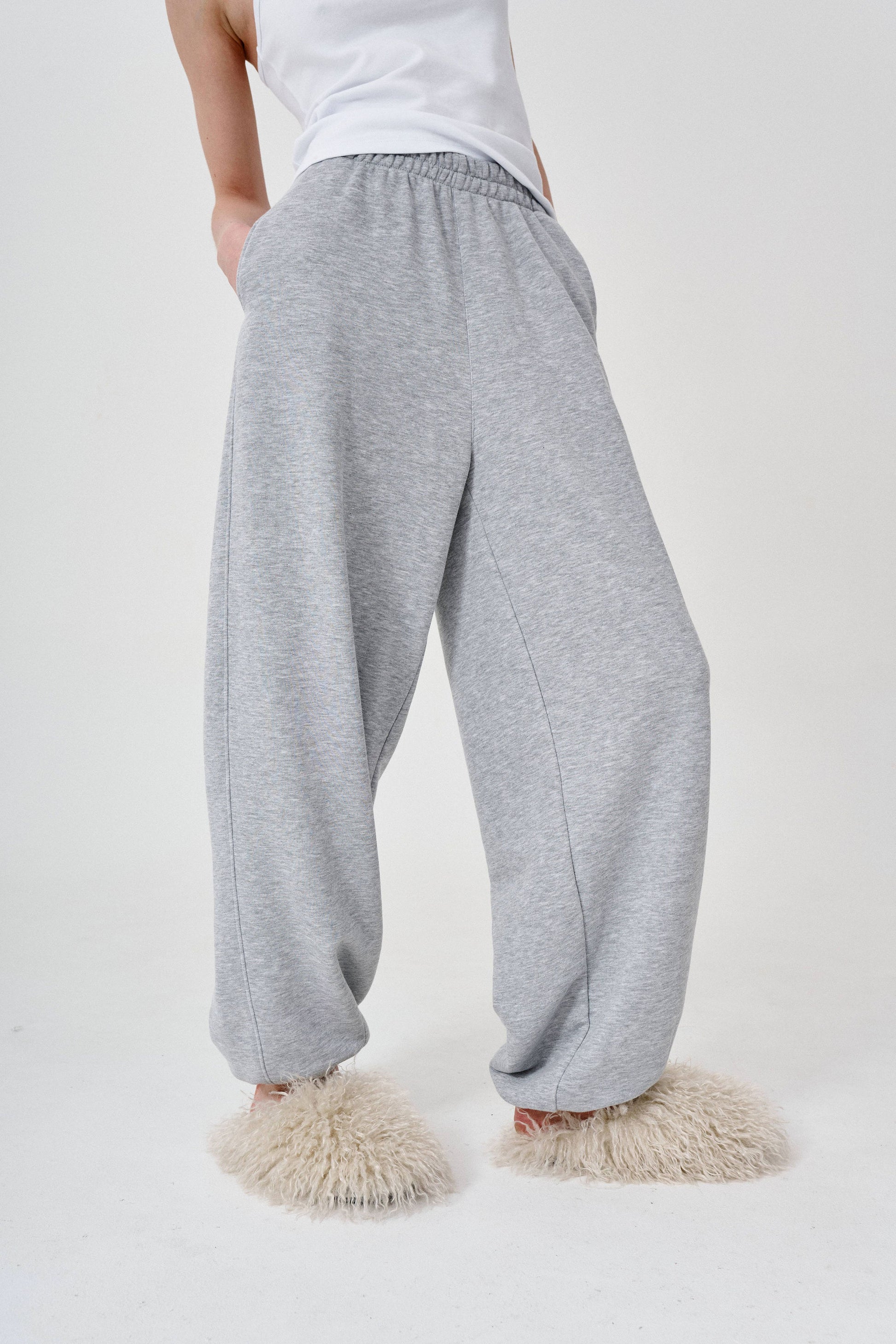спортивні штани aladdin у кольорі сірий меланж виконані в фасоні oversize, мають 2 бічні кишені.