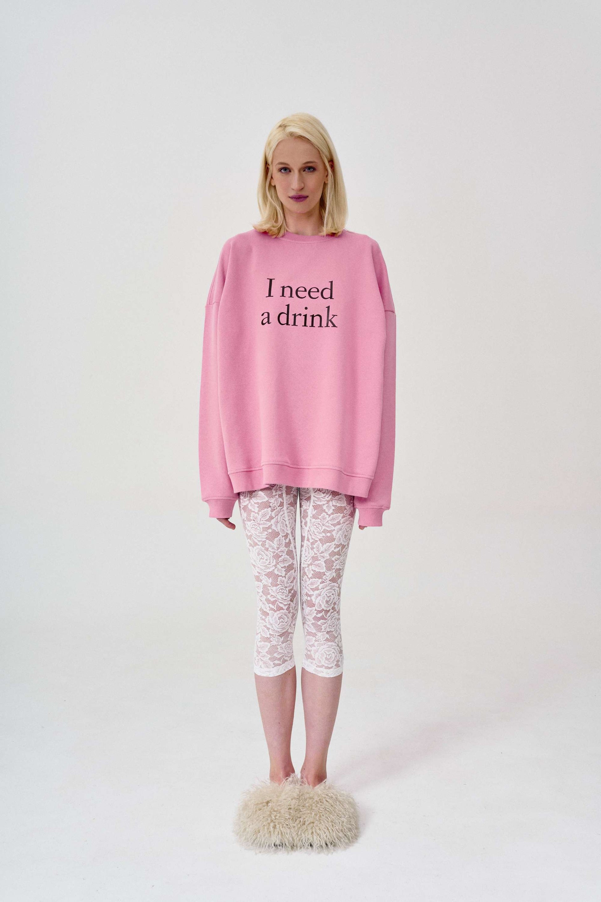 оверсайз світшот “I need a Drink” у кольорі bubble — зручний та якісний світшот, який буде із вами роками, але не тільки це робить його особливим. принт світшоту це іронічне пряме висловлювання, яке буде завжди говорити за вас та привертати увагу