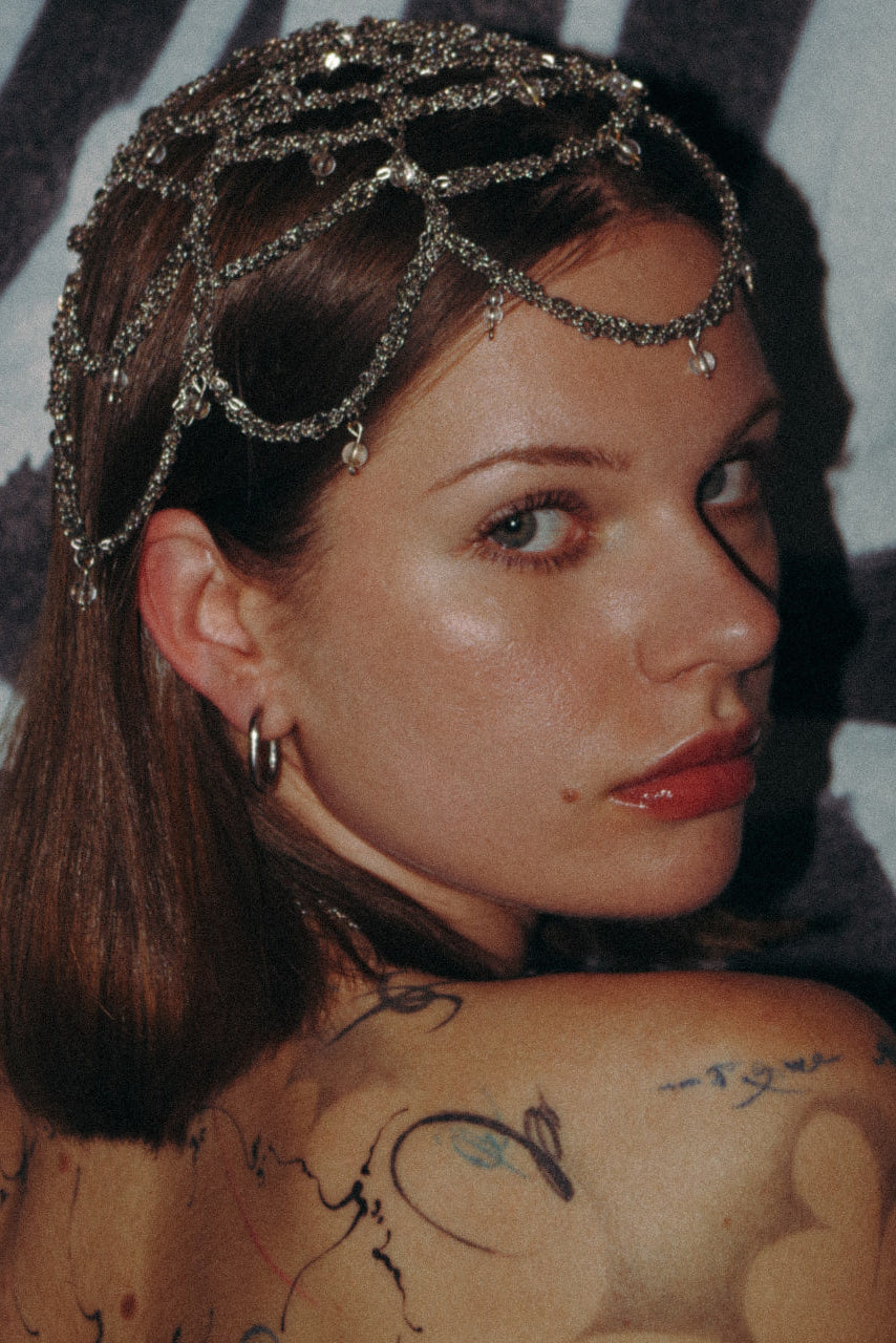 прикраса, в'язана з нержавіючого ланцюга з додаванням прозорих кришталів. можна обрати опцію, щоб кристали були у вигляді крапель, круглі гладенькі чи класинчі круглі кристали, також є можливість обрати колір кристалів.