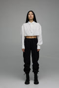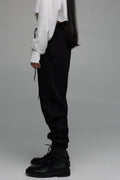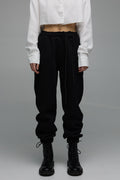 штани виконані в прямому фасоні, який не облягає фігуру. ви можете регулювати об'єм і посадку за допомогою шнурків, які знаходяться з внутрішньої сторони пояса, а довжину можна зменшити, підвернувши манжети знизу