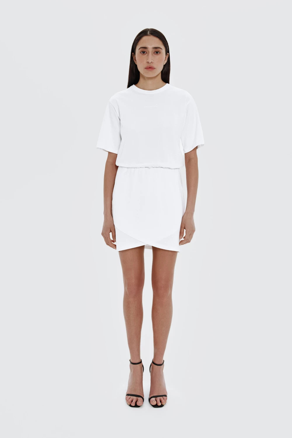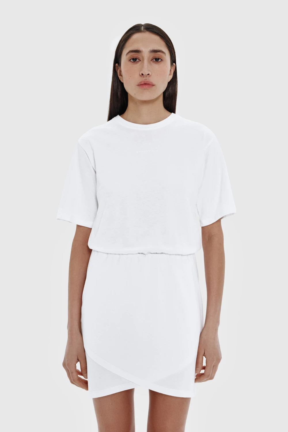 сукня в білому кольорі поєднала в собі 2 речі - футболку oversize і спідницю mini. вам більше не потрібно думати, як стилізувати образ, бо він вже готовий - просто додайте взуття та аксесуари. на передню частину сукні ми додали 3D принт - keepstyle